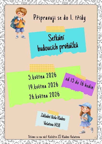 Třídní schůzka rodičů žáků 1. ročníku 2026/2027 se uskuteční v úterý 16. 6. 2026 v 16:30 hod.